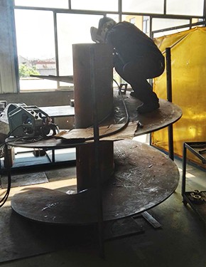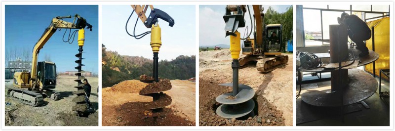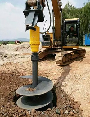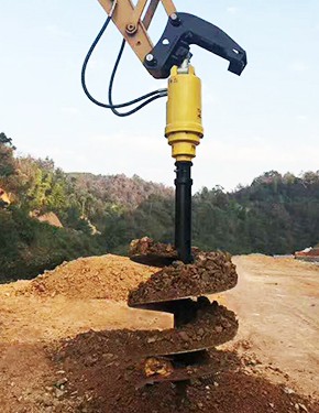 螺旋鉆機主要部件是鉆機桅桿立柱,立柱上設有滑道和可上下滑動(dòng)的減速箱,減速箱接動(dòng)力輸入軸和動(dòng)力輸出軸,動(dòng)力輸入軸的另一端接液壓馬達,動(dòng)力輸出軸的另一端接鉆桿,鉆桿的下端接鉆頭。鉆機鉆桿的上下運動(dòng)通過(guò)驅動(dòng)裝置對減速箱的驅動(dòng)實(shí)現,更有利于向下加力快速鉆進(jìn);減速箱可沿鉆機框架的滑道上下滑動(dòng),保證鉆孔的垂直度;鉆桿為螺旋葉片鉆桿,鉆進(jìn)時(shí)土料可沿葉片返到地面上;動(dòng)力輸出軸為空心芯軸,芯軸的上口可與混凝土灌注設備連接,進(jìn)行混凝土灌注。