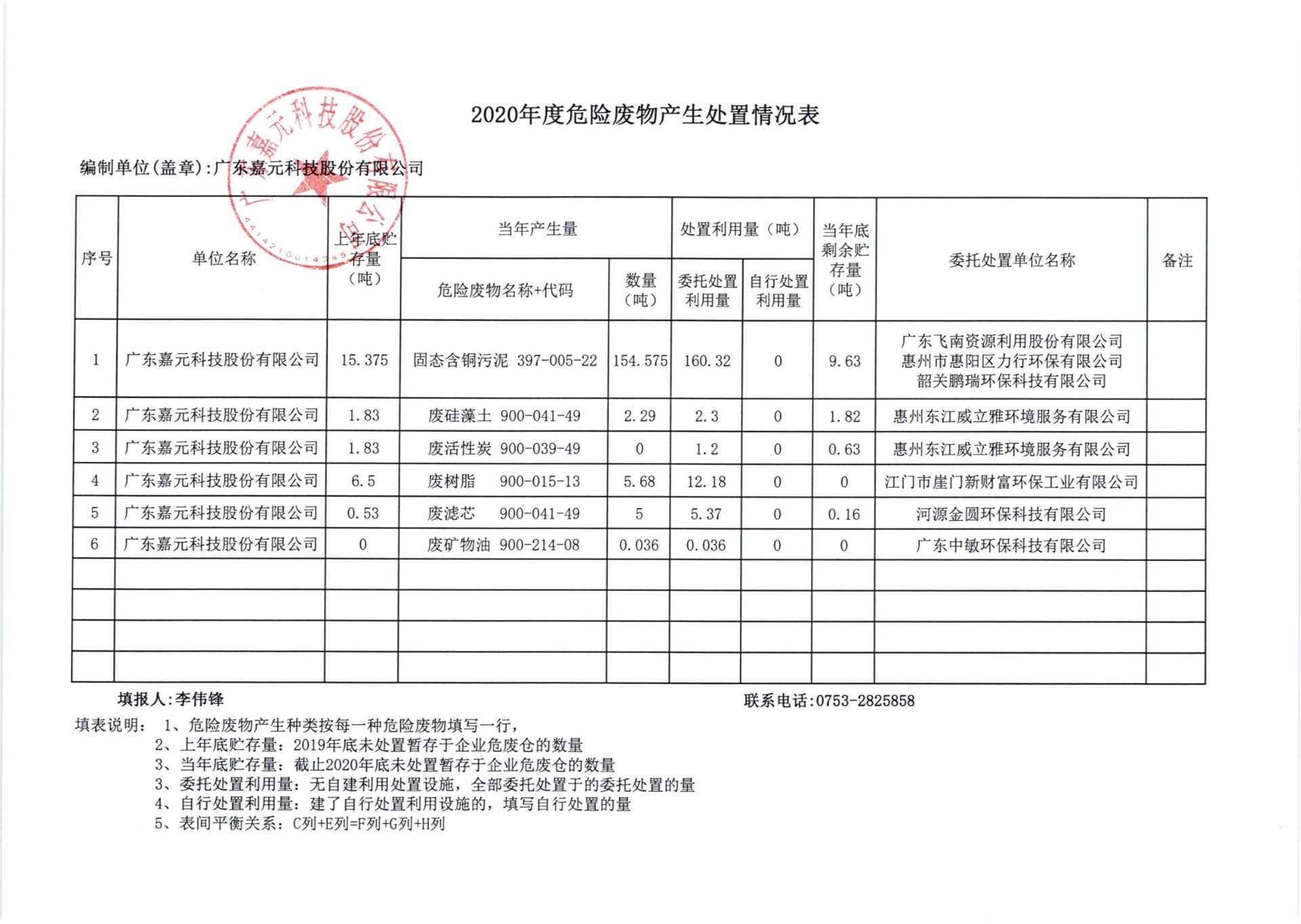 廣東嘉元科技股份有限公司現(xiàn)將國(guó)家排污許可證中固廢污染防治信息進(jìn)行公示。