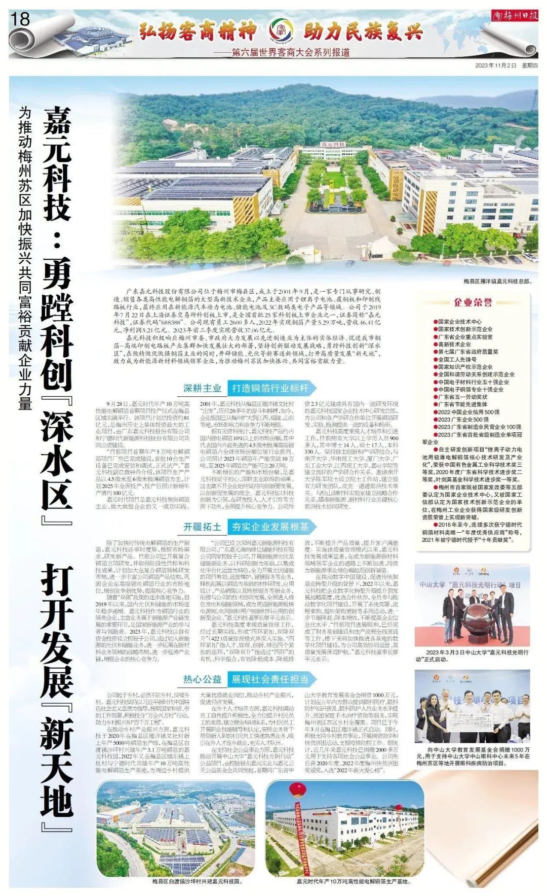 嘉元科技積極響應(yīng)梅州市委、市政府大力發(fā)展以先進(jìn)制造業(yè)為主體的實體經(jīng)濟(jì)、促進(jìn)我市銅箔-高端印制電路板產(chǎn)業(yè)集群加快發(fā)展壯大的部署,堅持創(chuàng)新驅(qū)動發(fā)展戰(zhàn)略,勇蹚科技創(chuàng)新“深水區(qū)”,在做精做優(yōu)做強(qiáng)銅箔主業(yè)的同時,開辟儲能、光伏等新賽道新領(lǐng)域,打開高質(zhì)量發(fā)展“新天地”,致力成為新能源新材料領(lǐng)域領(lǐng)軍企業(yè),為推動梅州蘇區(qū)加快振興、共同富裕貢獻(xiàn)力量。