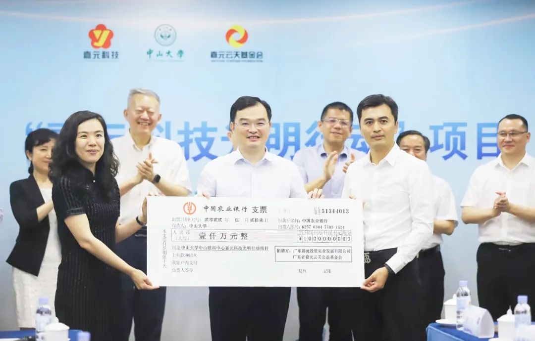 嘉元科技向中山大學(xué)教育發(fā)展基金會捐贈1000萬元,用于支持中山大學(xué)中山眼科中心未來5年在梅州蘇區(qū)等地開展眼科疾病防治項目。