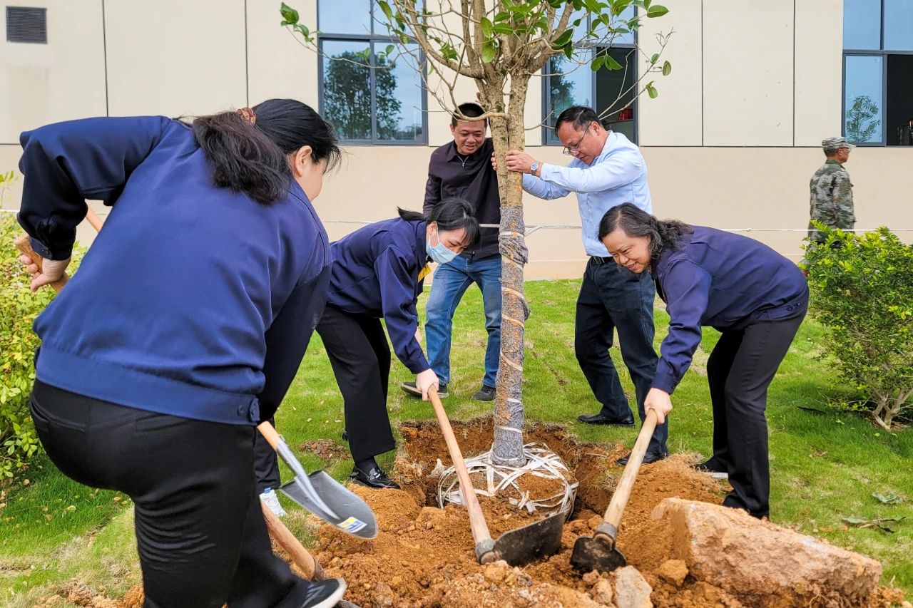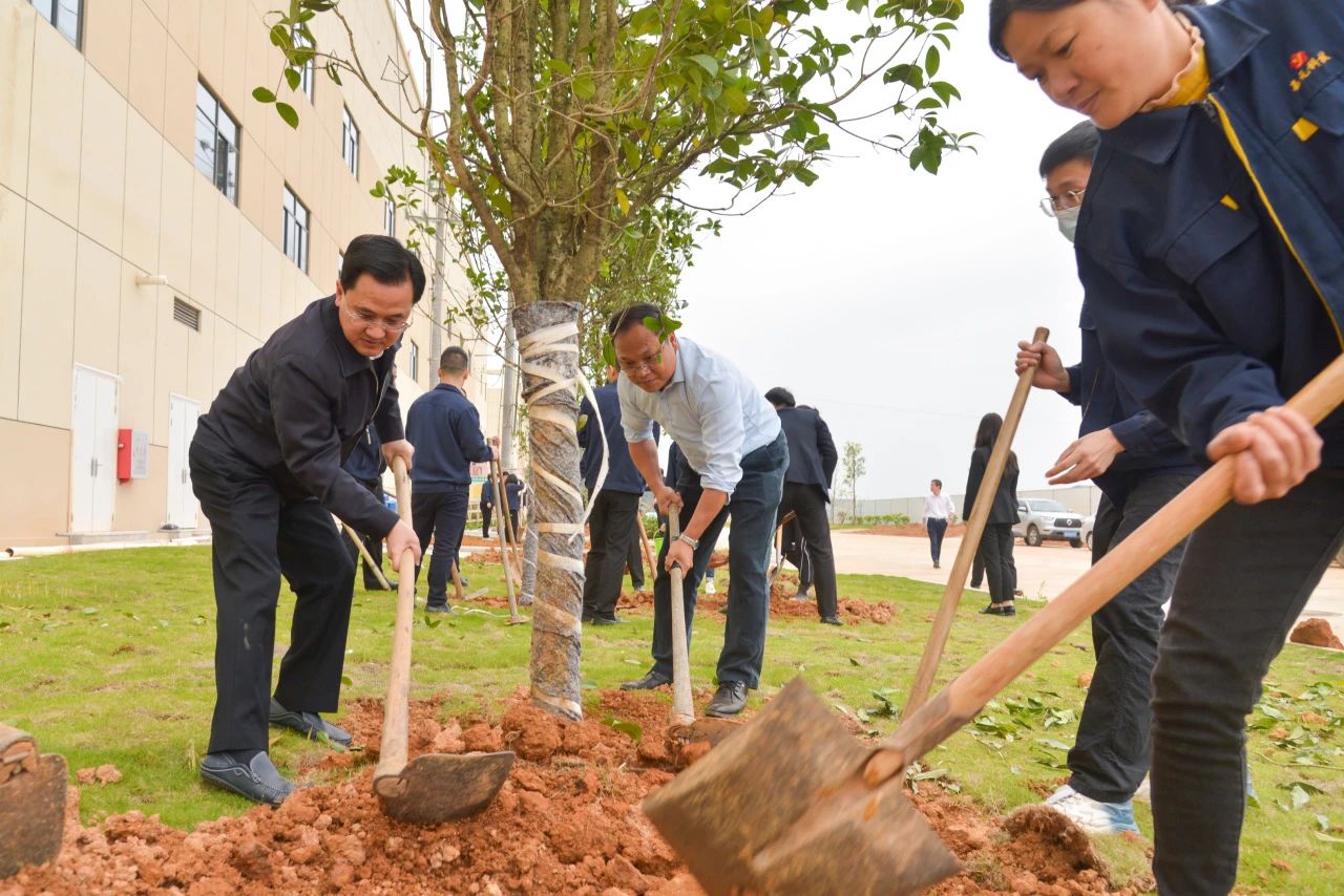 人勤春來早,植綠正當時。3月22日上午,公司領導劉少華、葉敬敏、葉成林和由黨支部、工會、婦聯以及各部門員工代表組成的嘉元科技植樹志愿者隊伍約100人,到位于梅縣區(qū)城東鎮(zhèn)的嘉元時代廠區(qū)開展植樹活動。志愿者們熱情高漲、干勁十足,紛紛揮鍬鏟土、栽植新綠、扶樹填土、圍堰澆水,種下金絲楠木、秋楓、桂花等大樹綠植,用辛勤勞動為“嘉元林”再添新綠?,F場一棵棵樹苗迎風挺立、錯落有致,呈現出生機勃勃的動人景象,成為城東基地一道靚麗宜人的綠色風景線。