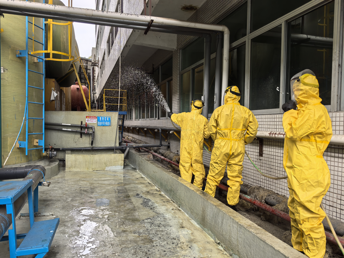 在演練的硫酸泄漏事故發(fā)生后,各相關部門緊密協(xié)作,立即啟動突發(fā)環(huán)境事件應急預案,警戒疏散組立即趕到現(xiàn)場,對周邊人員進行緊急疏散,并拉起警戒線;搶險救援組身著專業(yè)的防護裝備,準確迅速地切斷了污染源,利用應急沙袋、事故水池等應急設施,及時有效地控制了污染的擴散,阻止了事態(tài)的進一步蔓延,成功地處置了突發(fā)環(huán)境事件。